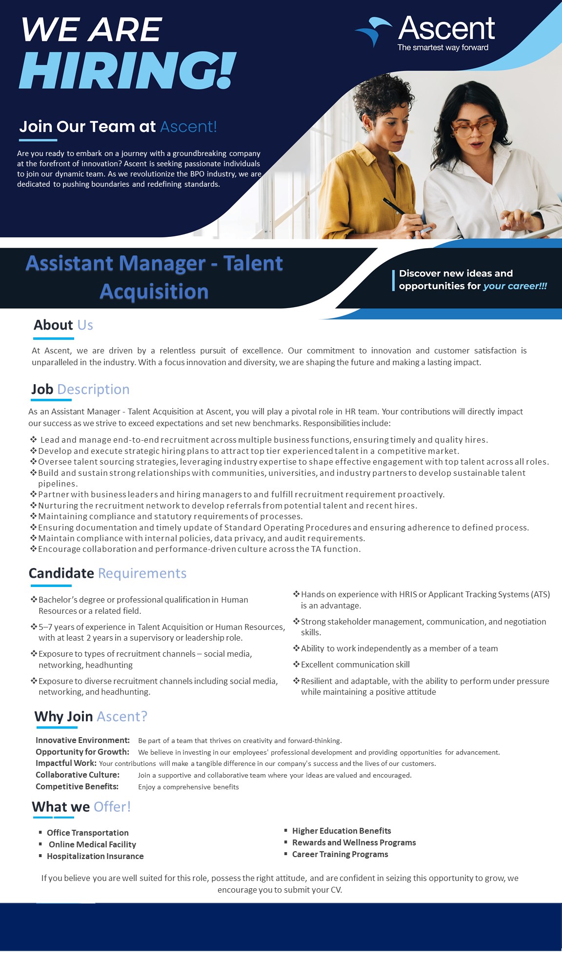 Ascent Business Solutions (PVT) Limited (www.ascentsolutionz.com), formerly Accenture Lanka (PVT) Limited, transitioned in April 2024 under the leadership of Brandix, blending global expertise with local dynamism to offer the 'Best of Both Worlds.' With over a decade of experience in the BPO/IT industry, Ascent has become an agile, adaptable organization, uniquely positioned to meet diverse customer needs.